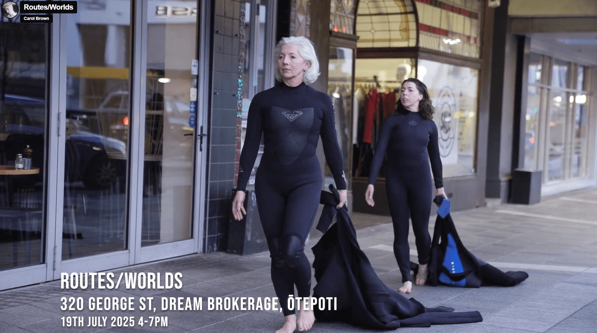 Routes/Worlds was a creative residency and a site-responsive project led by choreographer Carol Brown and composer Simon Eastwood, in the former Company of Strangers shop on George Street, Dunedin. Supported by the Dunedin Dream Brokerage, the project explored themes of trans-human and trans-species coexistence through movement, sound, and collaborative exchange, activating the space with a blend of dance, music, video, and community engagement.